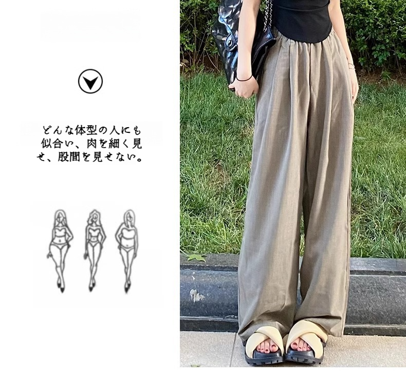 薄手で通気性の良い綿麻ワイドパンツ女性用